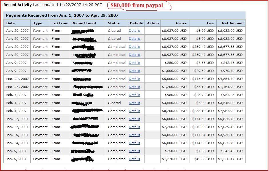 There is $80,000 from paypal and $22,000 more from cashiers checks.